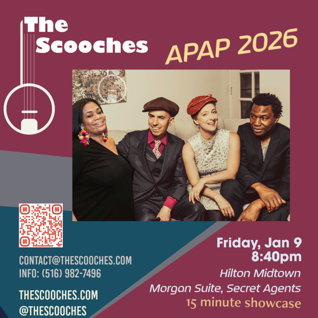 Please join The Scooches for a 15 minute showcase of original global Americana music. The chart-topping, NYC-based Scooches will electrify your audience with curated sets of toe-tapping, hand-clapping music, leaving you with no choice but to dance along. The Scooches’ eclectic performances are like master classes in musicology that quite simply embody joy and excellent musicianship.